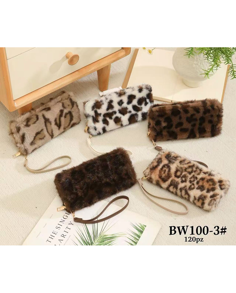 Női szőrös leopárd mintázatú pénztárca BW100-3